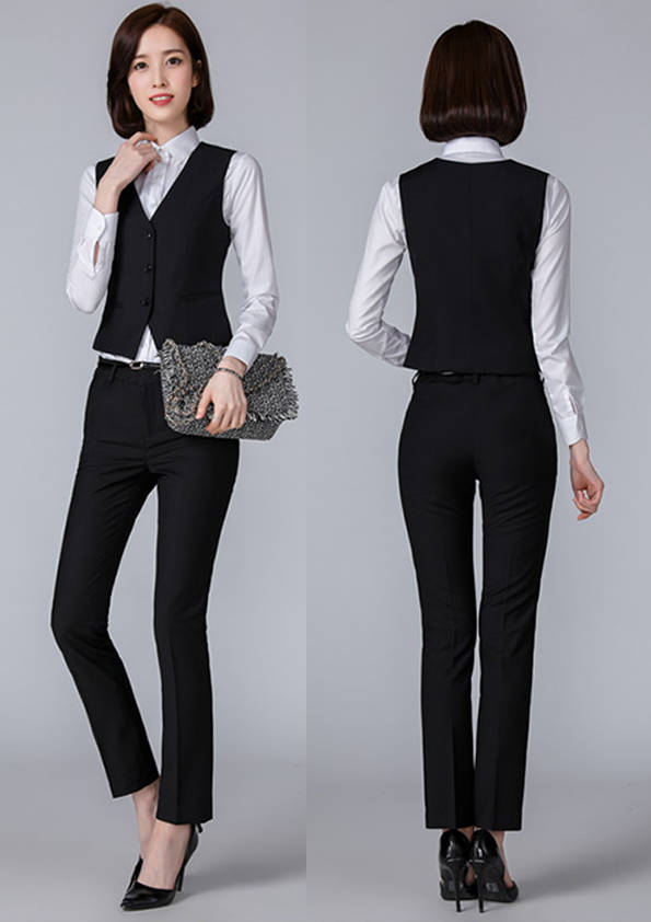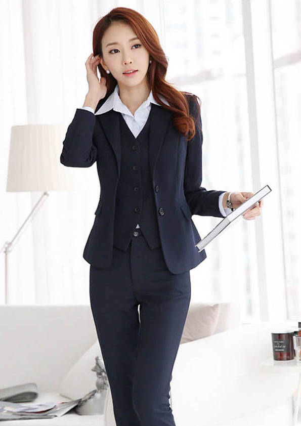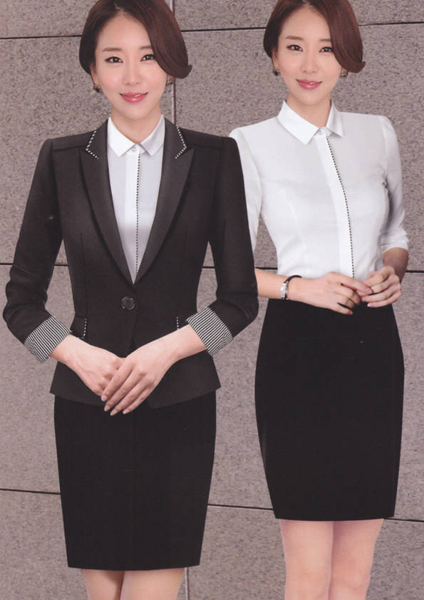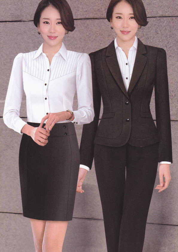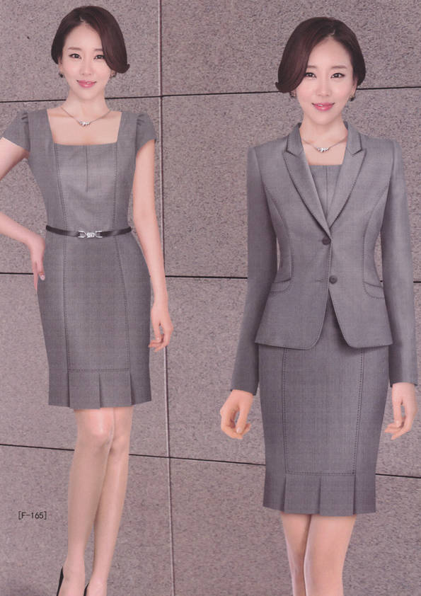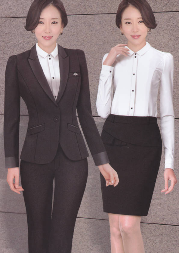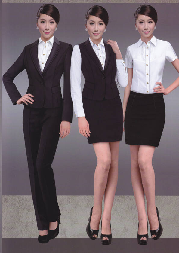 女式正裝是以西服套裝為準(zhǔn),以西褲、裙或西服套裙等在正式,嚴(yán)肅場(chǎng)所的著裝。在這三種類型中,每一種都要考慮其顏色和面料。而西服套裙是女性的標(biāo)準(zhǔn)職業(yè)著裝,可塑造出強(qiáng)有力的形象。女性的職業(yè)服裝比男人更具個(gè)性,最佳顏色是黑色、藏青色、灰褐色、灰色和暗紅色。精致的方格、印花和條紋也可以用于正式場(chǎng)合。