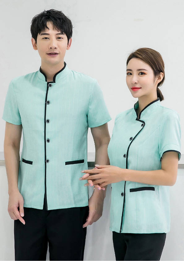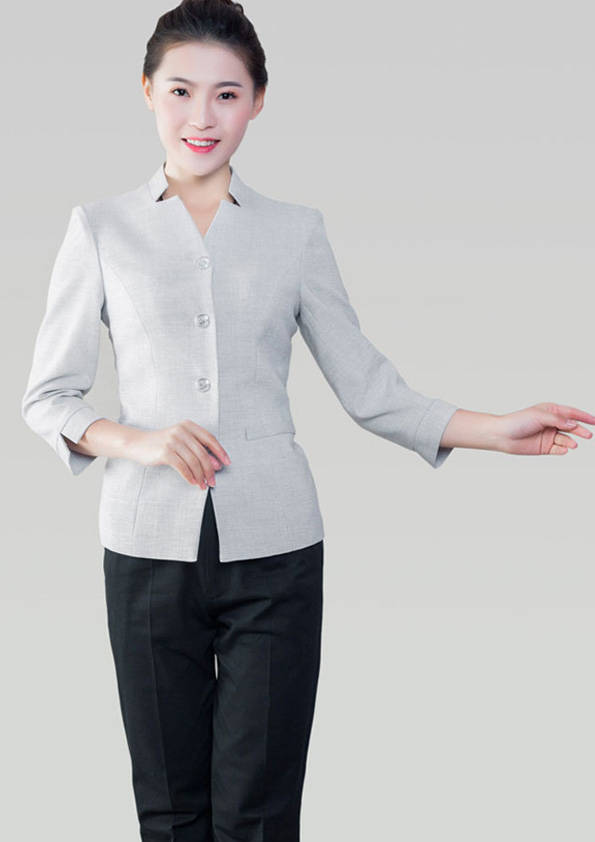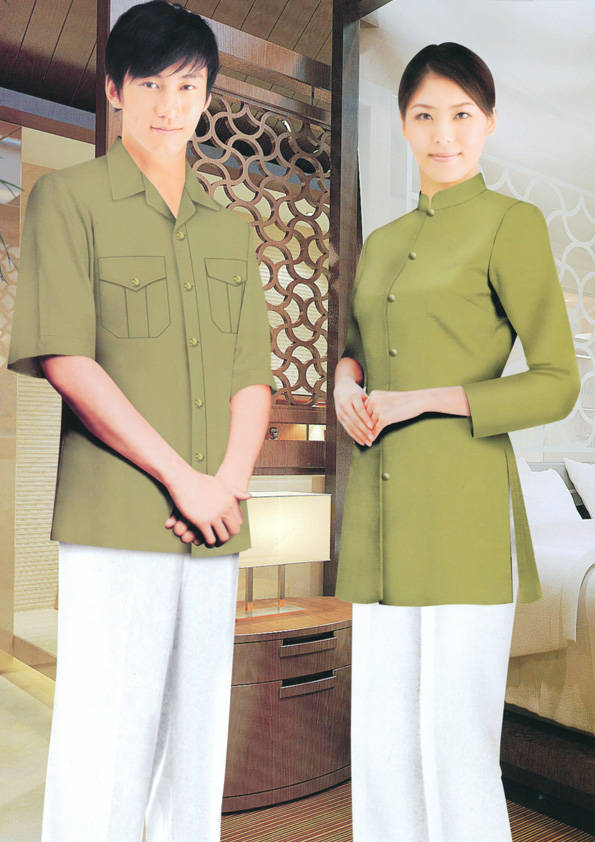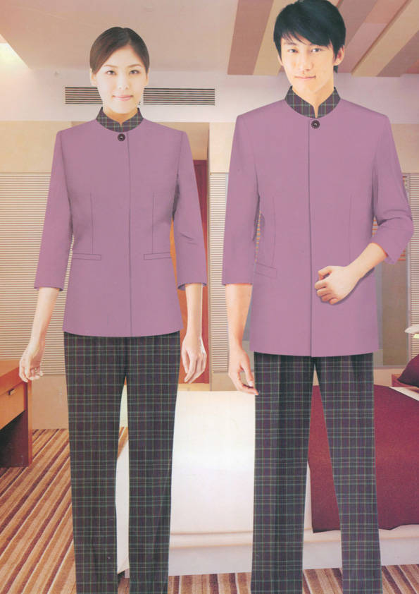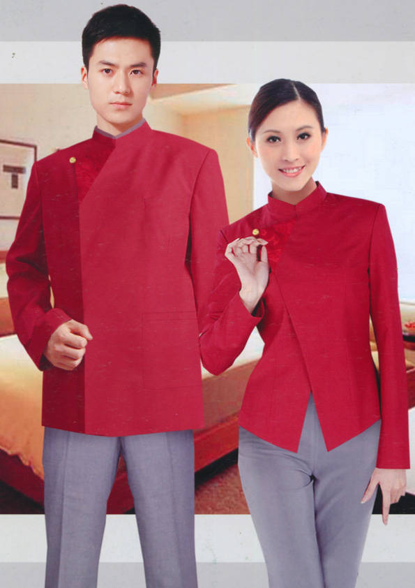 客房服務員主要指為賓館或酒店的客房提供清潔及為住戶提供生活幫助的服務人員。其主要工作包括:清潔并檢查客房、補充用品、為客人提供服務 、清潔用品使用及保養、檢查客人遺留物及客房內貴重物品、確保工作區域的安全。保潔服裝應該注意以下幾個問題。1、服裝的色彩與酒店裝修相搭配。2、服裝的面料選定。3、服裝的款式一定要舒適,方便活動。4、服裝的樣式與酒店風格相搭配。5、服裝要成系列感。