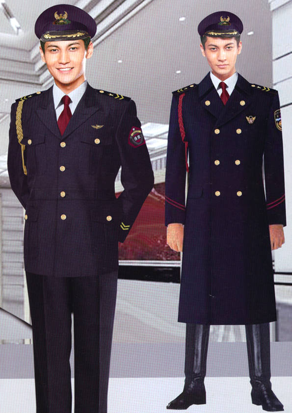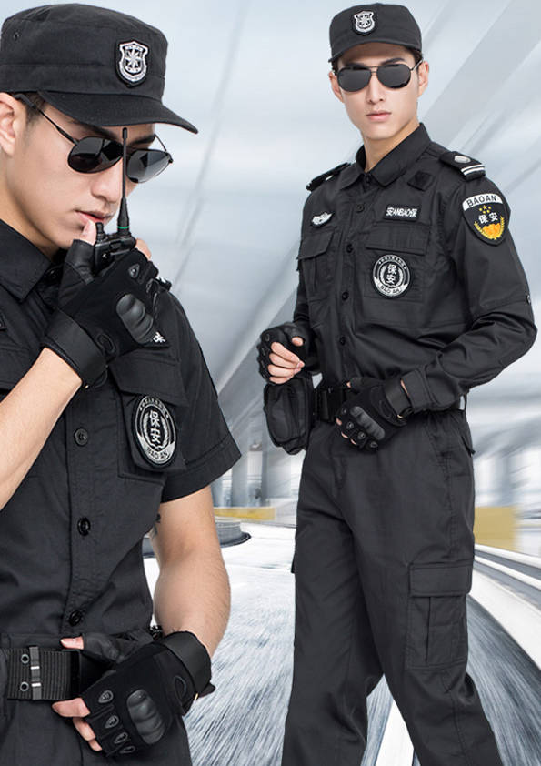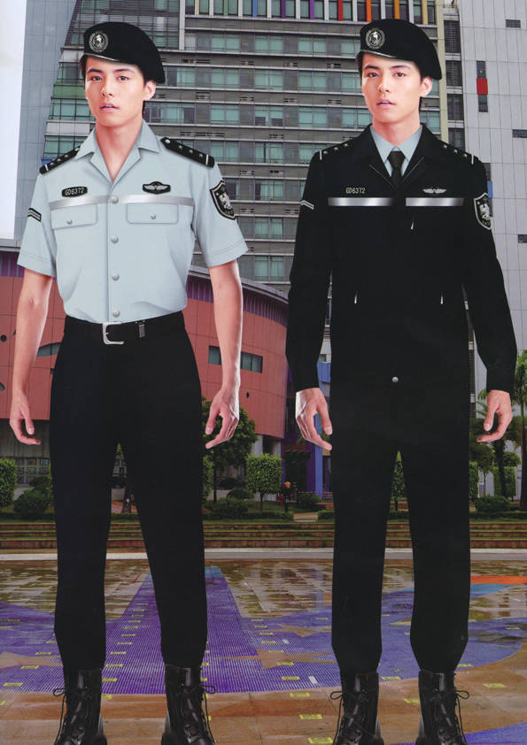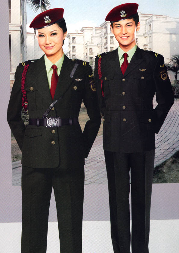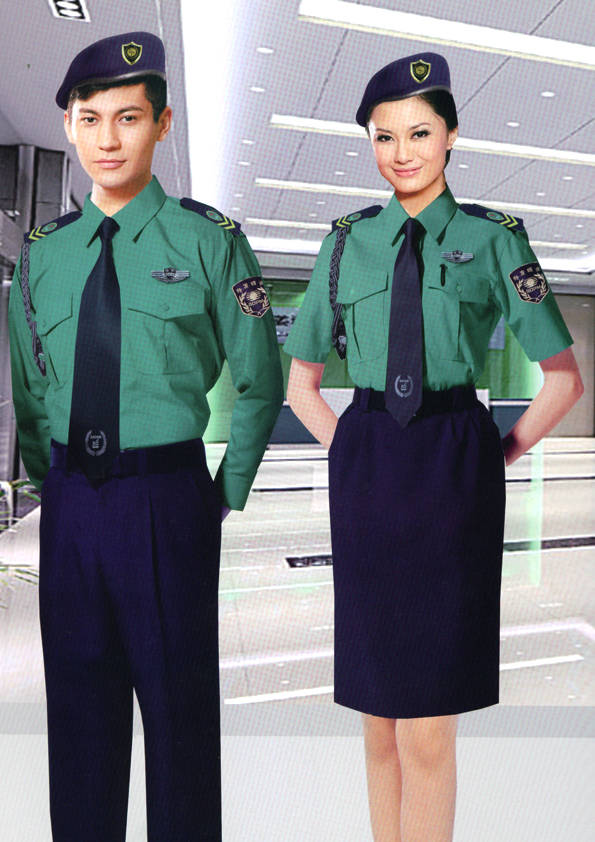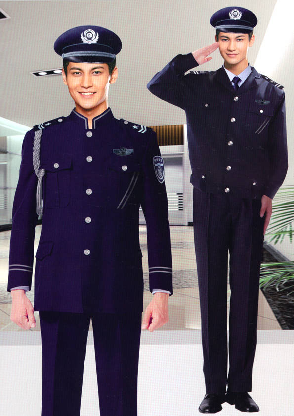保安員服裝分為:春秋冬常服、執勤服、押運服、訓練服、長短袖襯衣、夏褲、女裙、棉服等。帽子分為:大檐帽、卷檐帽、工作帽、貝雷帽、棉帽等。鞋分為:單皮鞋、棉皮鞋、押運員高筒皮靴、女保安員高筒皮靴、訓練用鞋等。配飾標志為:帽徽、肩章、臂章、保安從業單位標志號牌、專用鈕扣、專用腰帶扣、領帶、領帶夾等。在治安環境越來越好的今天,“保安”這一崗位不再是單一的崗位了,現在越來越多的企業、單位把“保安”的崗位用途增強了,不僅僅只是用來擔任安保工作,更是用來做為一個體現形象及服務的崗位,所以現在有部份企業、單位的保安服裝也越來越時尚、簡潔、大方了,往那里一站猶如一道風景!